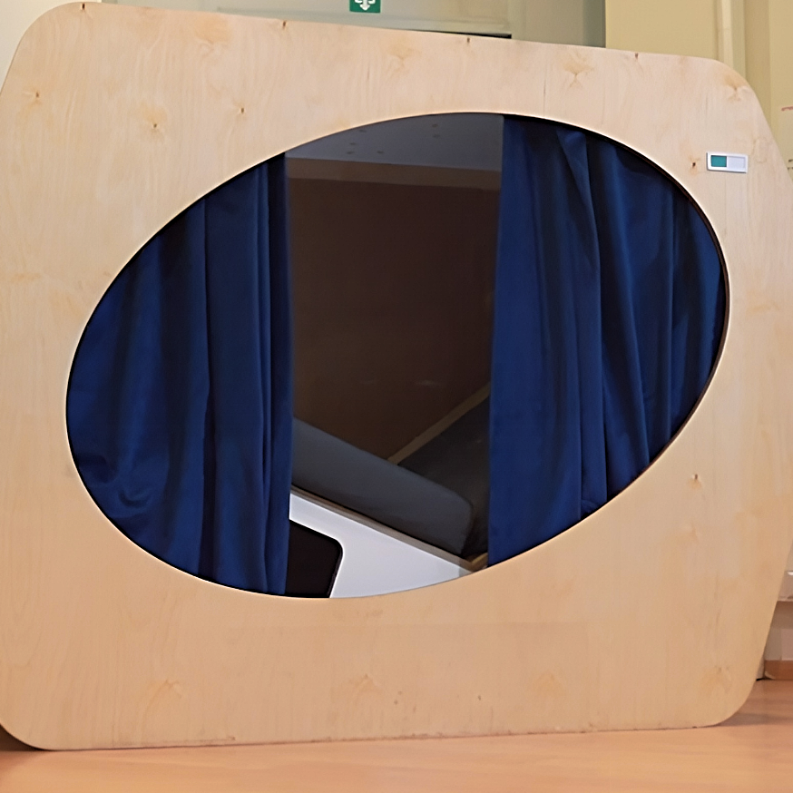 Onze cocon biedt niet alleen zichtbare isolatie door zijn ontwerp, maar ook akoestische isolatie door onze isolerende gordijnen, onze ecologische kurk en onze koptelefoons.